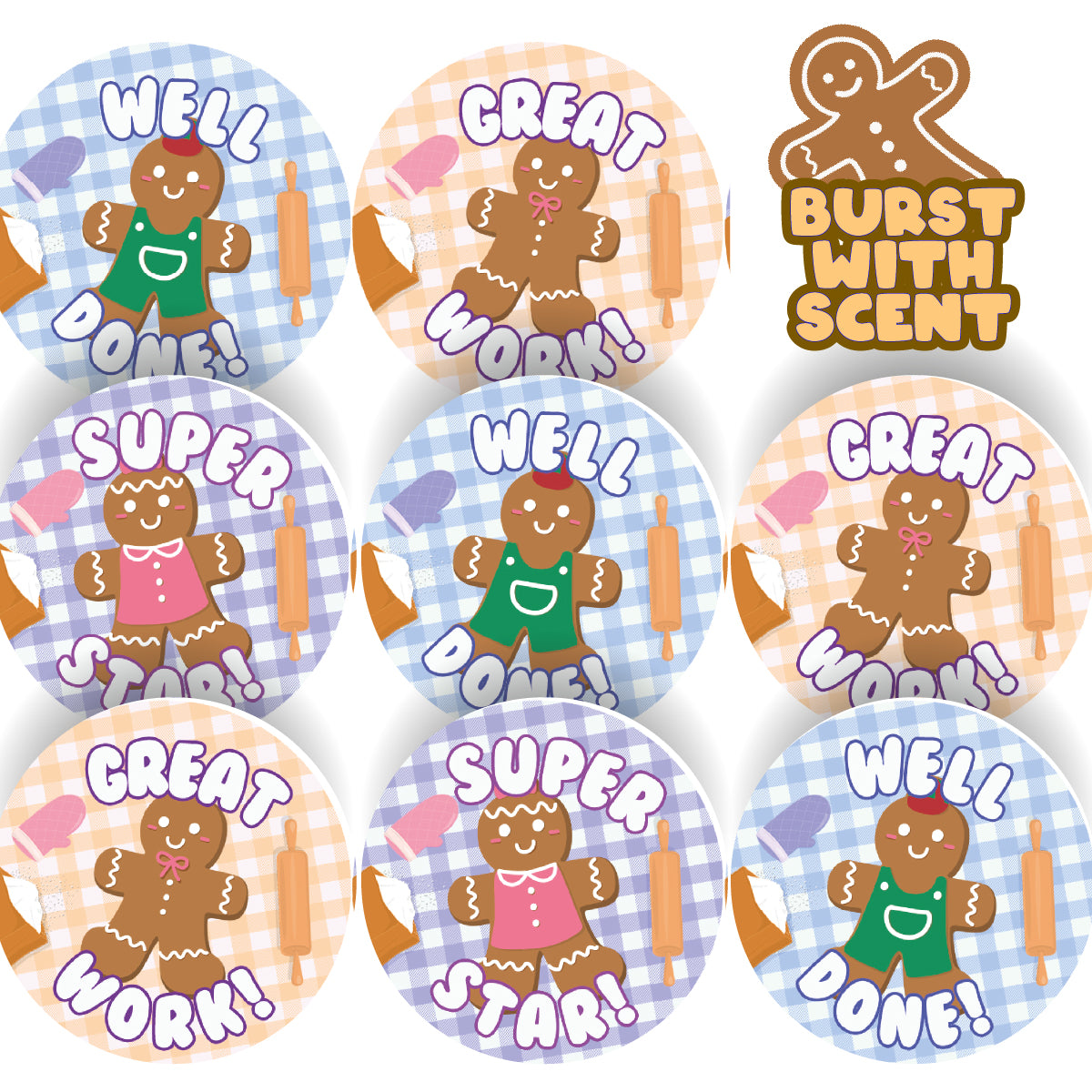120 Gingerbread Praise Words Scented Stickers - 30mm Scented Stickers - For Teachers Nursery Parents