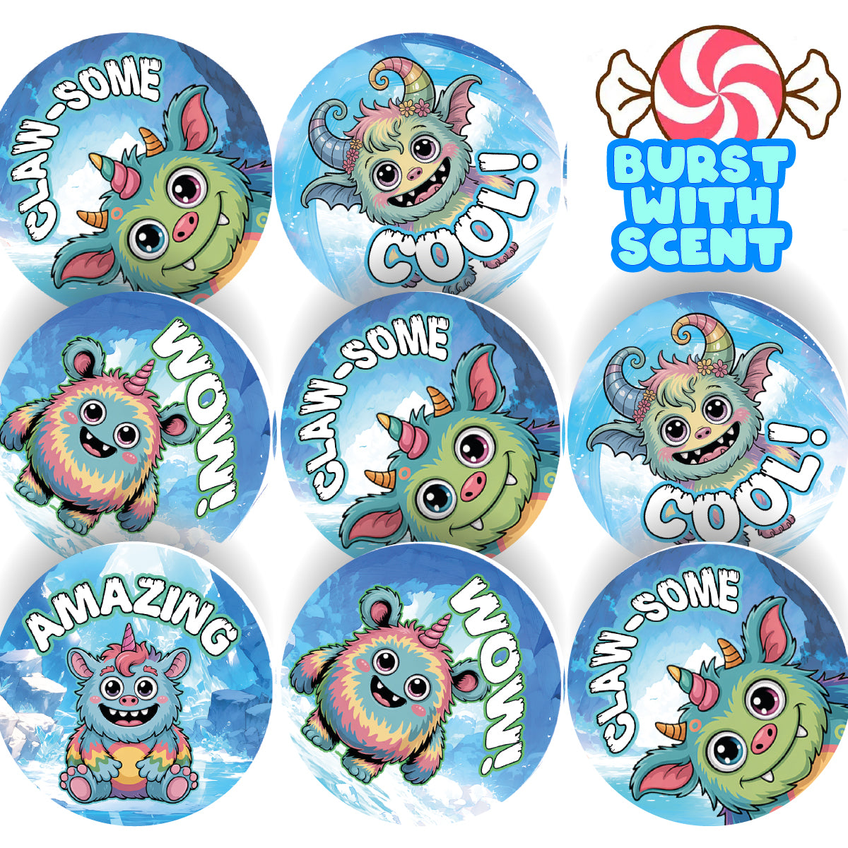 120 Minty Monsters Peppermint Praise Words Scented Stickers - 30mm Scented Stickers - For Teachers Nursery Parents