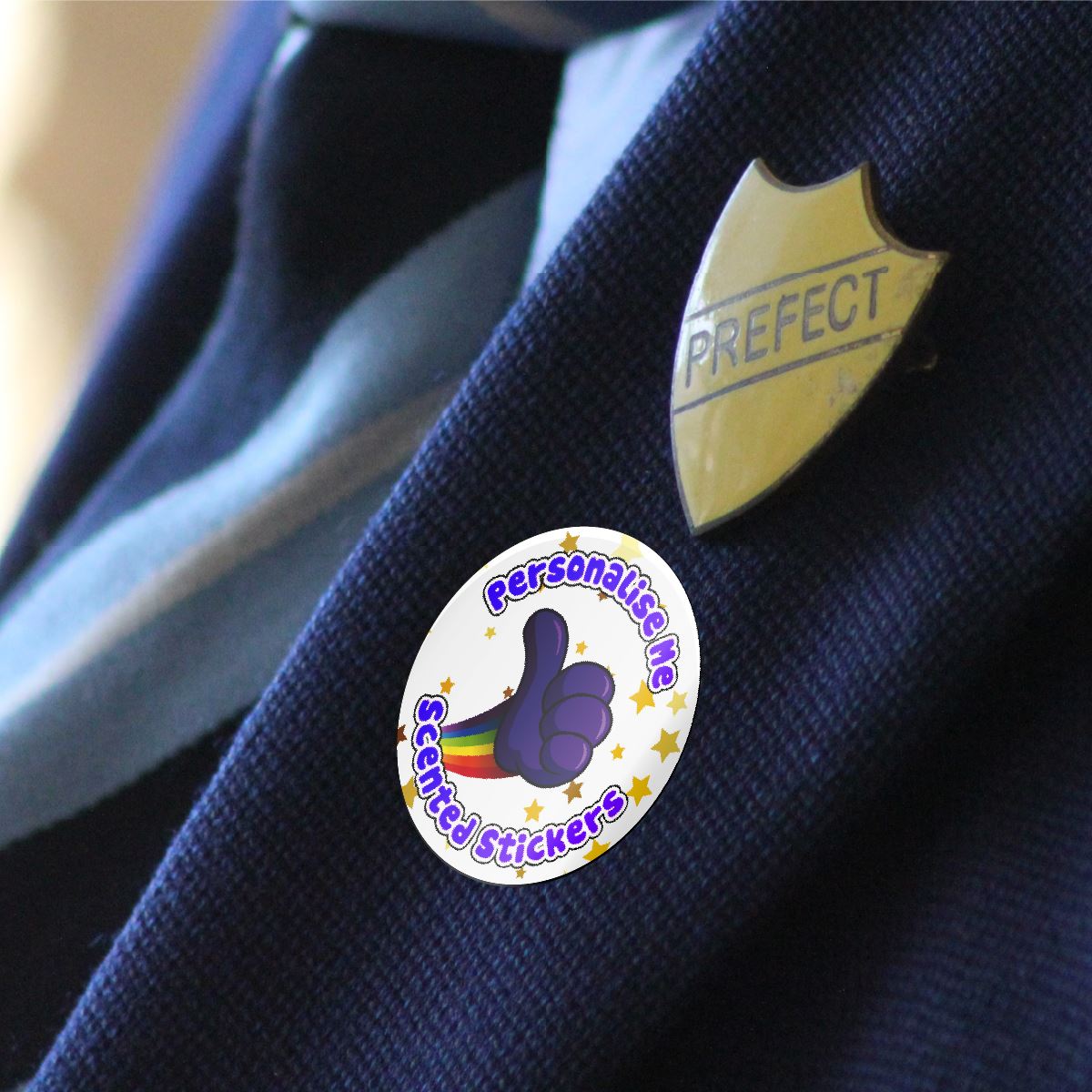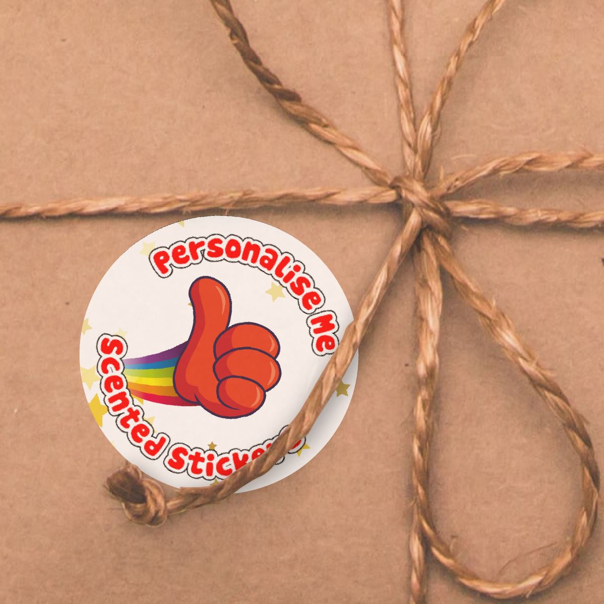 120 Mixed Berry Scented Personalised Stickers - Thumbs Up - Personalised 30mm Scented Stickers - For Teachers Nursery Parents