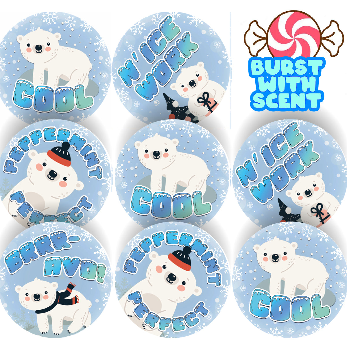 120 Polar Bear Praise Words Peppermint Scented Stickers - 30mm Scented Stickers - For Teachers Nursery Parents