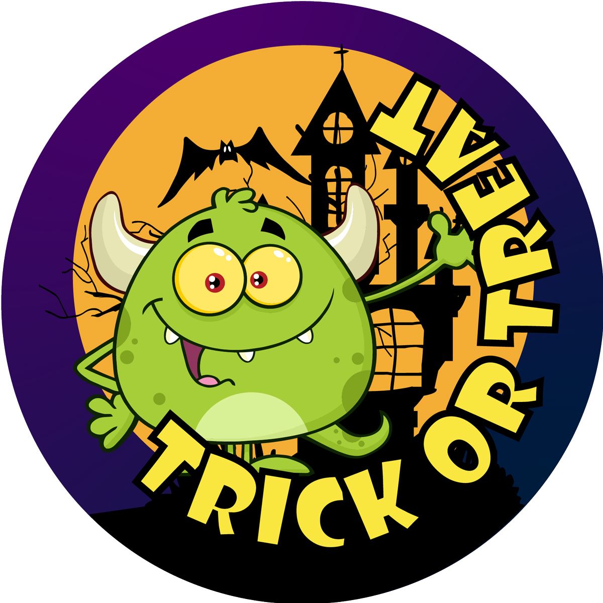 144 Halloween Trick or Treat (Pack 1) 30mm Round Children's Reward Stickers for Teachers or Parents