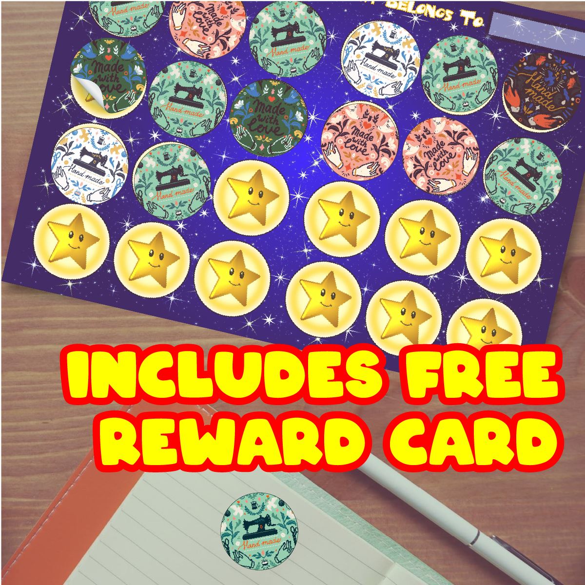 These 30 mm Handmade Sewing Themed reward stickers are great for use on packaging and products, 144 glossy stickers perfect for sticking to glass, plastic, metals, hand made good, paper and card.
