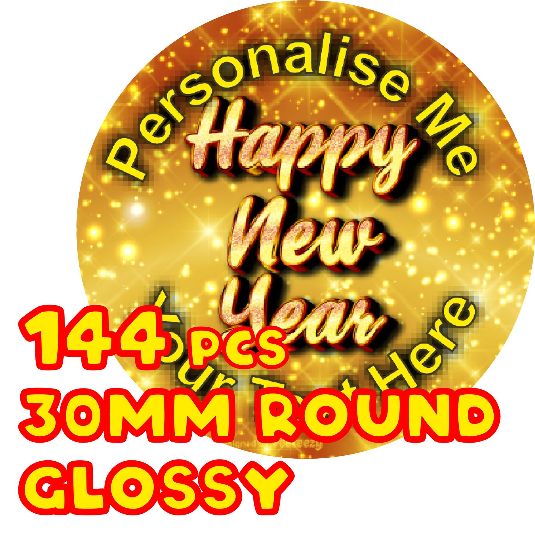 144 Happy New Year 30mm Personalised Glossy Stickers