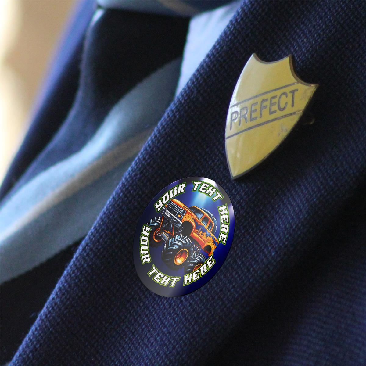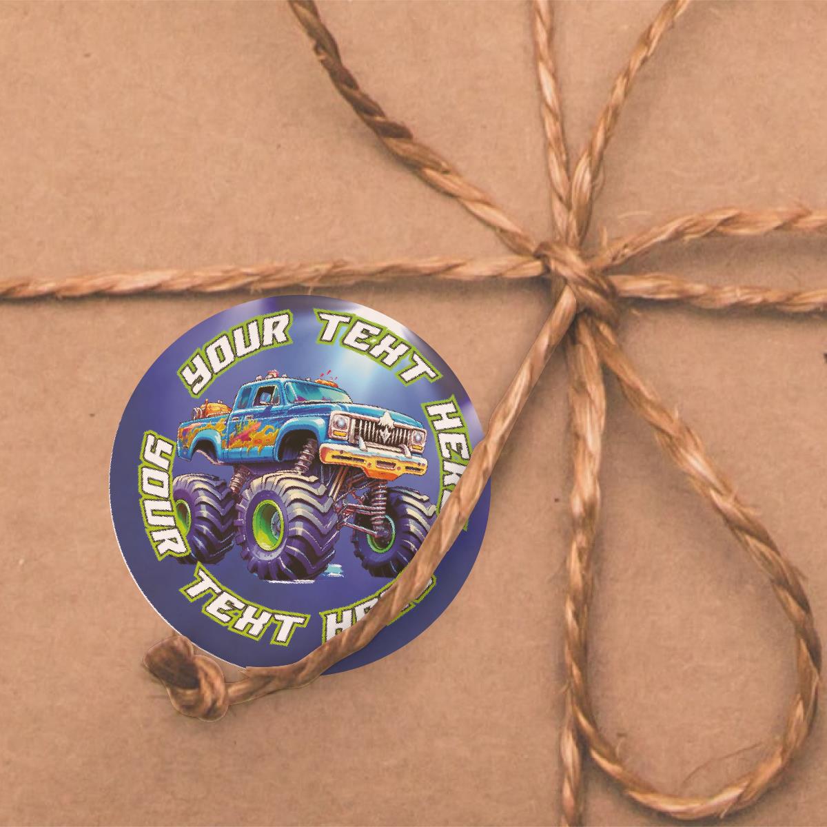 144 Monster Truck Personalised 30mm Children's Reward Stickers for Teachers or Parents and Party Bags