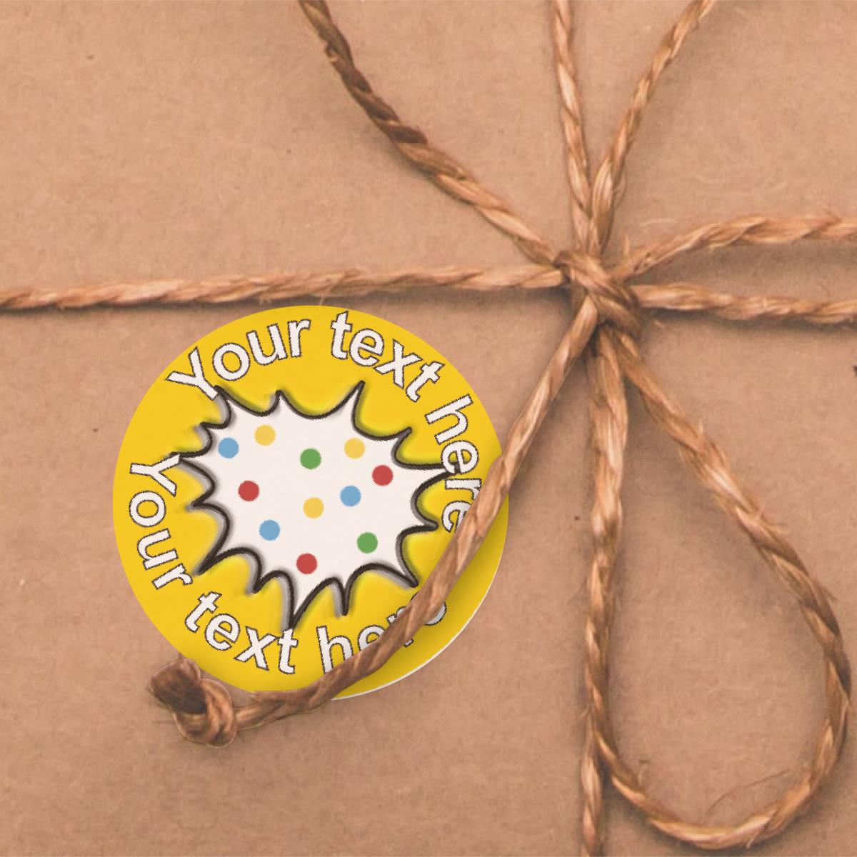 144 Personalised 30mm Yellow Polkadot Comic Children Reward Stickers for School Teachers, Parents and Nursery