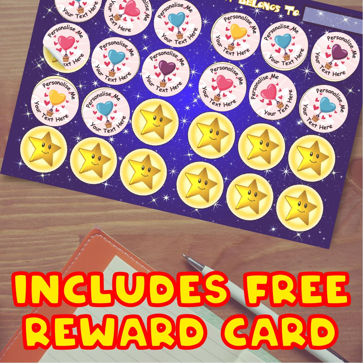 Great value with 144 personalised Heart-Air-Balloon stickers per pack. These stickers are great for that special someone.