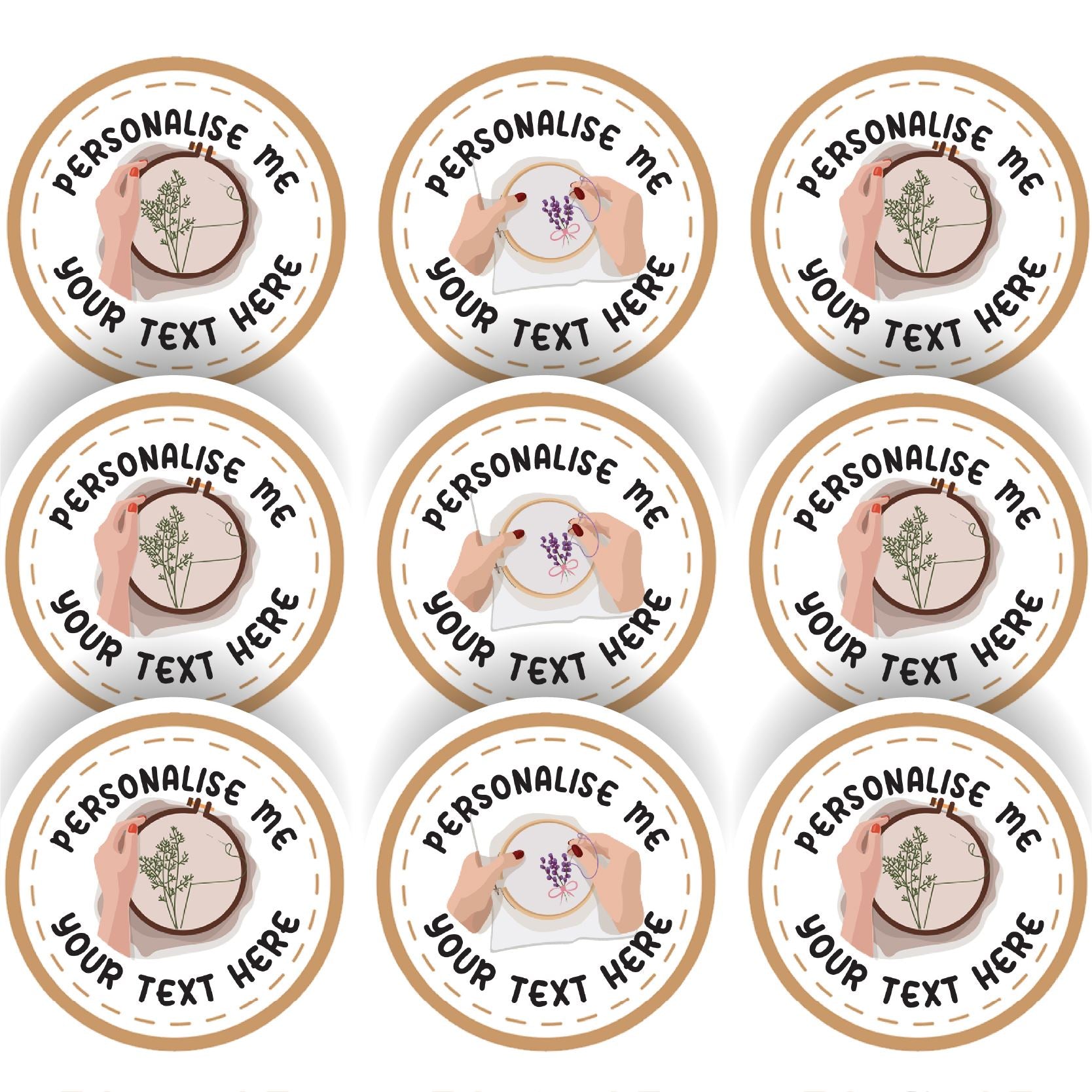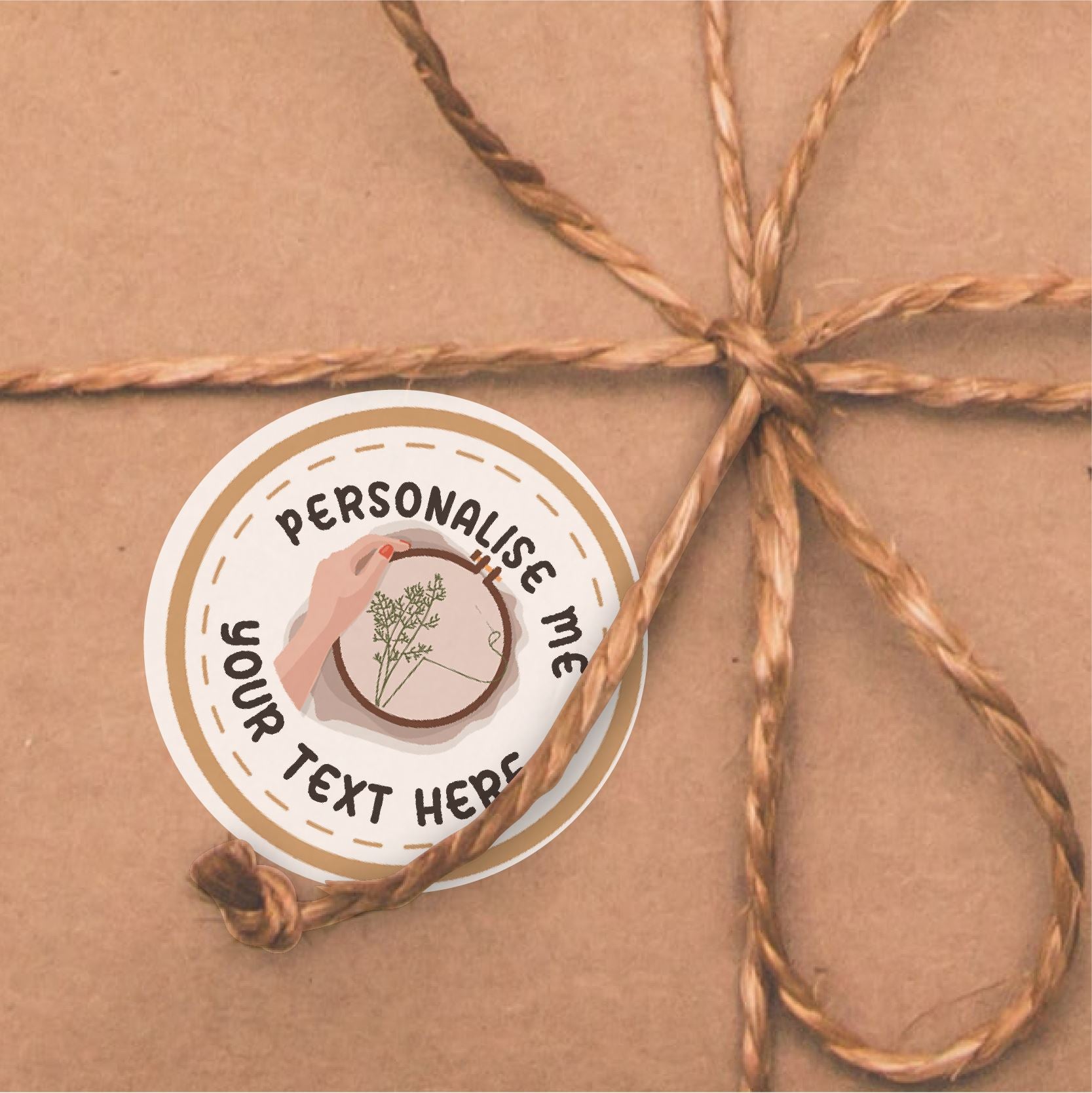 Great value with 144 Handmade Embroidery personalised Stickers per pack, These glossy labels are great for use on packaging and products, Perfect for sticking to glass, plastic, metals, hand made good, paper and card.