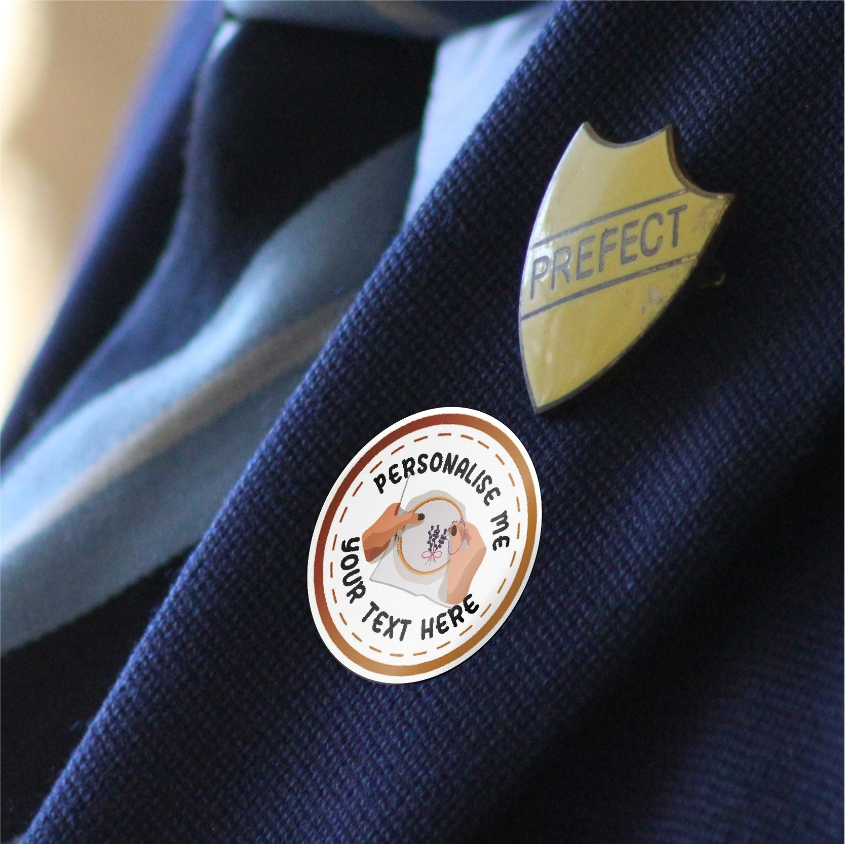144 Personalised Cross Stitch Embroidery Sewing 30mm Glossy Stickers Labels