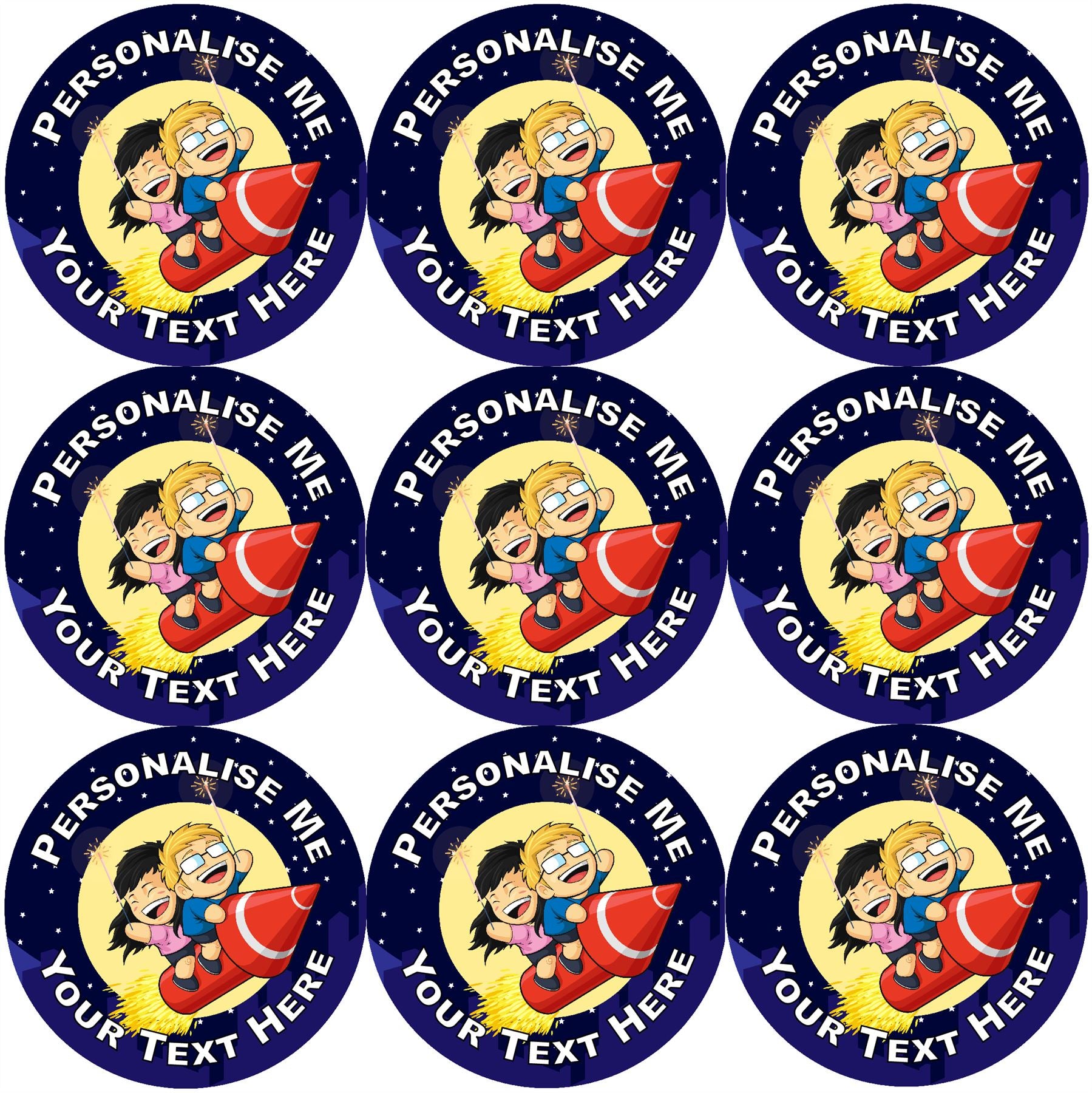 144 Personalised Firework Rocket 30mm Reward Stickers for School Teachers, Parents and Nursery