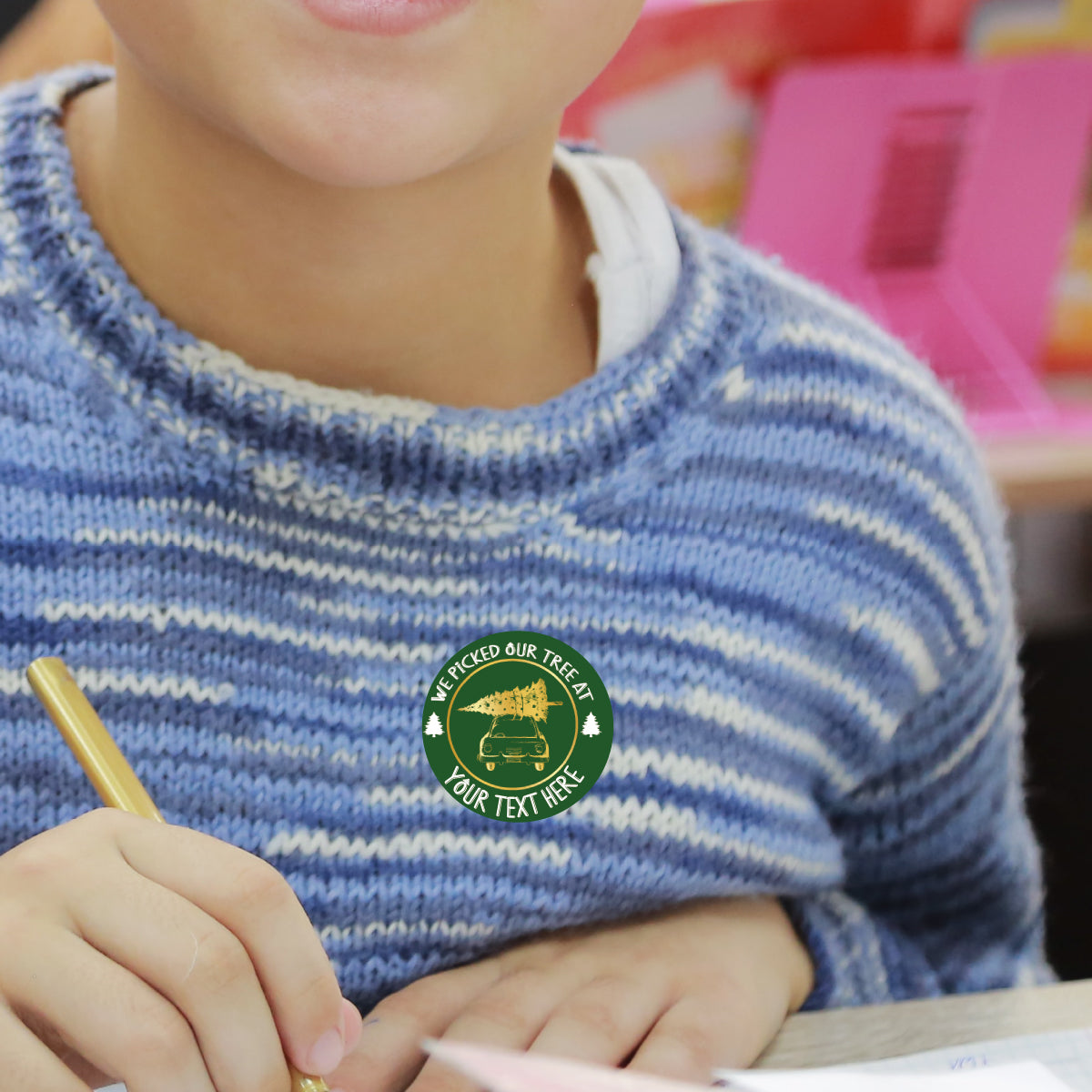 144 Personalised We Picked Our Tree 30mm Christmas Stickers for Families, Farms, Santa's Grotto's