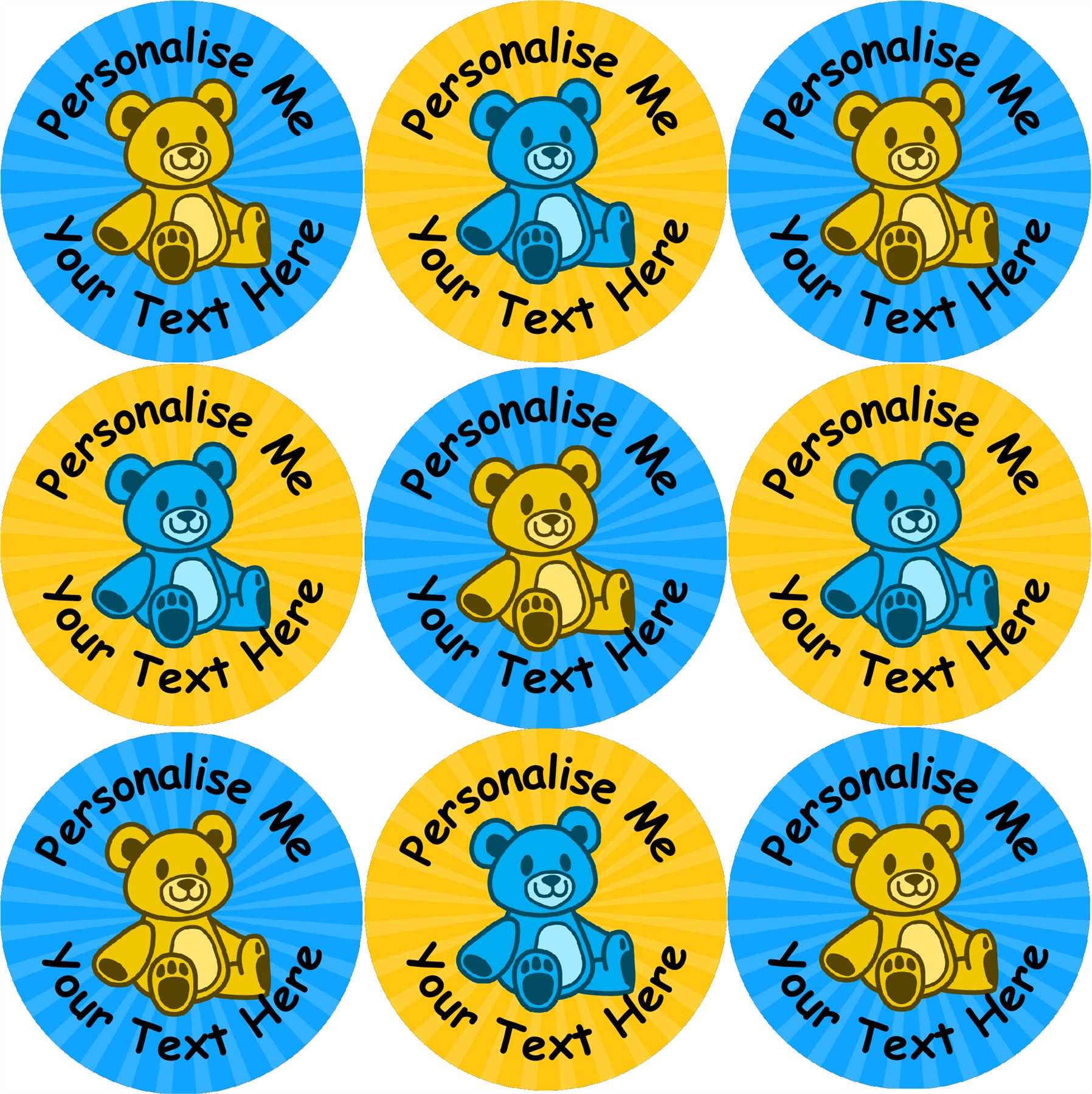 144 Personalised Yellow & Blue Bears 30mm Reward Stickers for School Teachers, Parents and Nursery