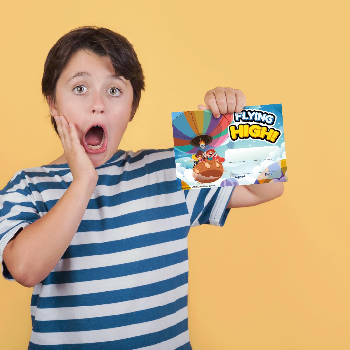 Reward any occasion, progress and achievement with this 30 pack of cheerful A5 Flying High themed certificate awards. Printed on 250gsm silk finish cad and ready to personalise.