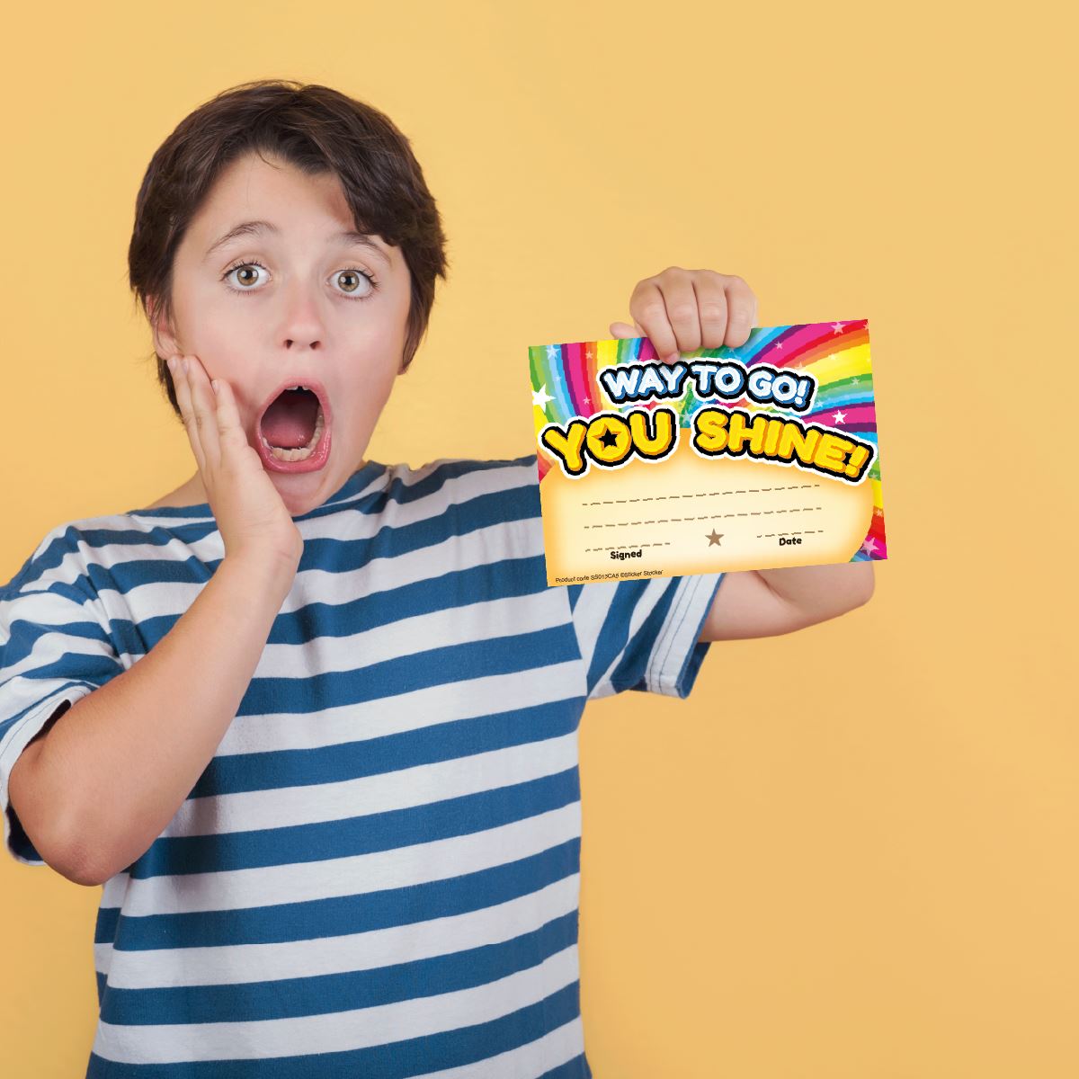 Reward any occasion, progress and achievement with this 30 pack of cheerful A5 Way to Go, You shine themed certificate awards. Printed on 250gsm silk finish cad and ready to personalise.
