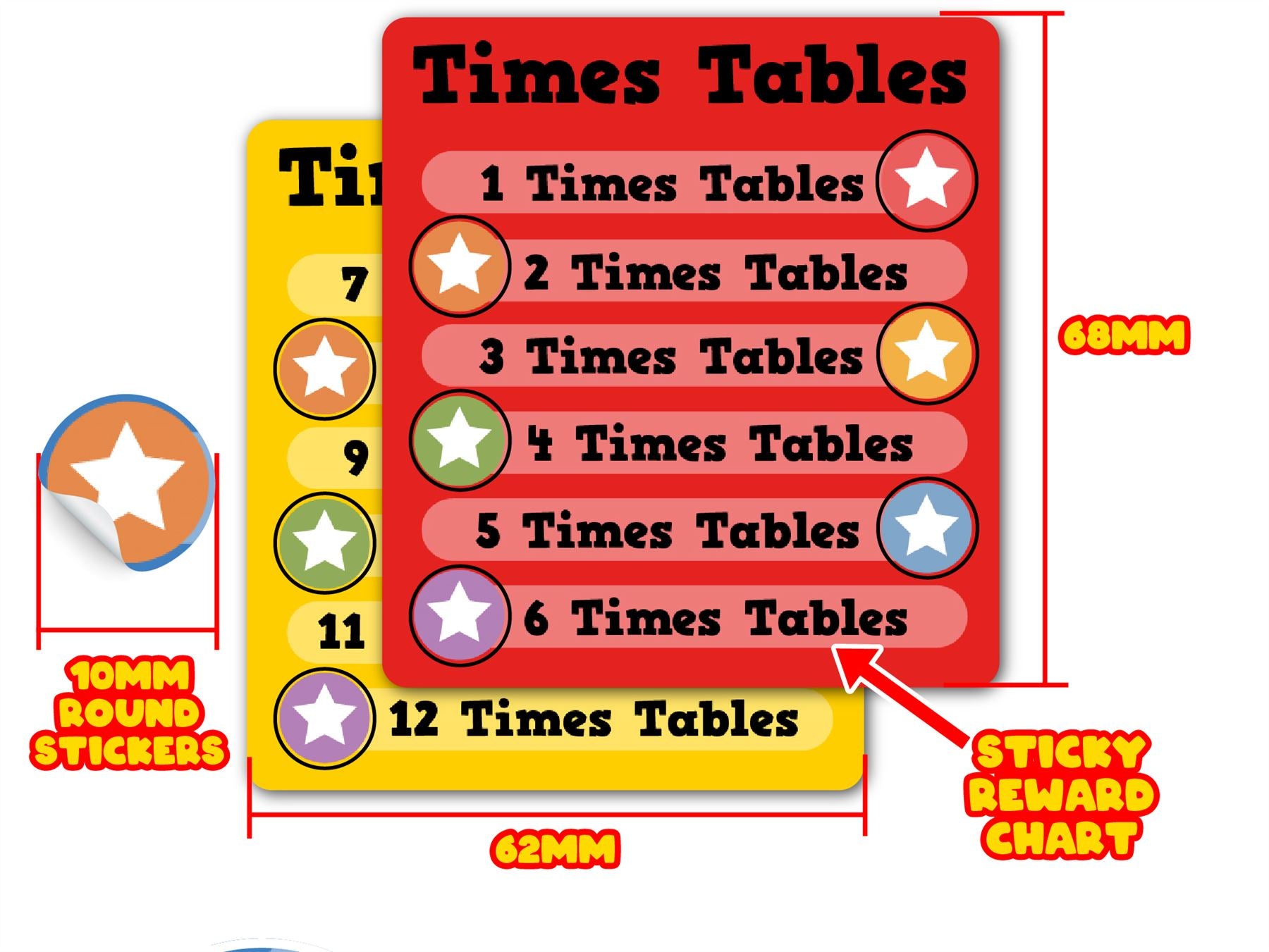 36 Ticker Trackers - Sticky Reward Charts - Math Times Table Multiplication Themed
