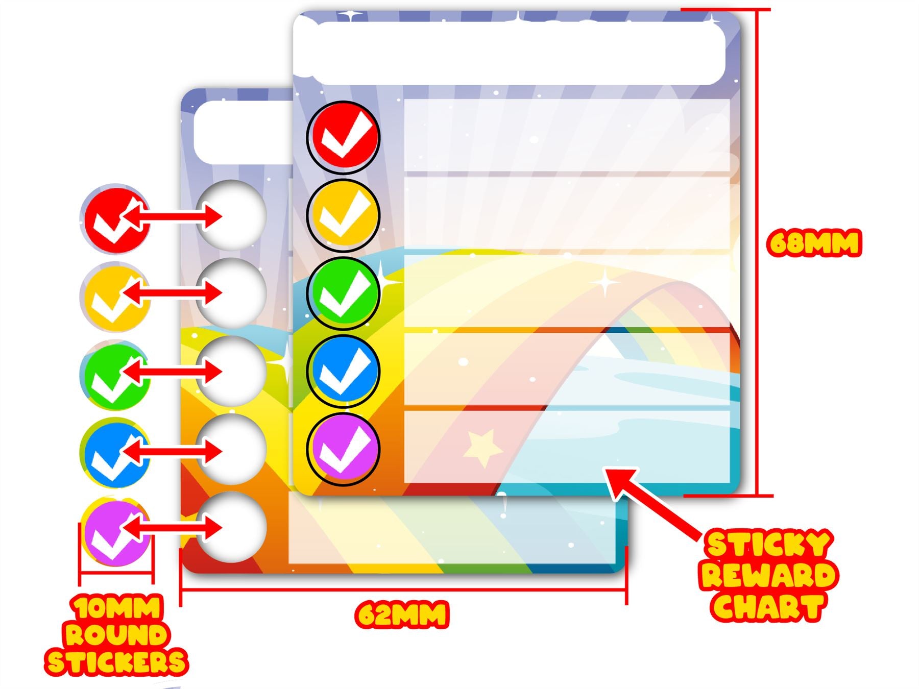 Simple to use, just peel away the sticky chart from the backing leaving the 10mm stickers on the backing sheet and stick the chart in your child's workbook or diary, then fill in the pre-cut holes with the included stickers when the child's task is complete. Ticker Trackers are permanent and cannot be re-used.