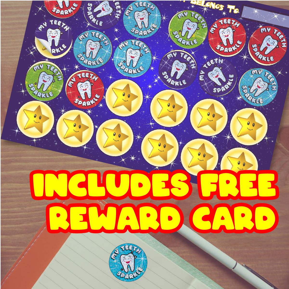 96 My Teeth Sparkle Stickers 30mm + 60 Free Sparkle Smiles Reward Stickers for Teachers, Parents and Schools
