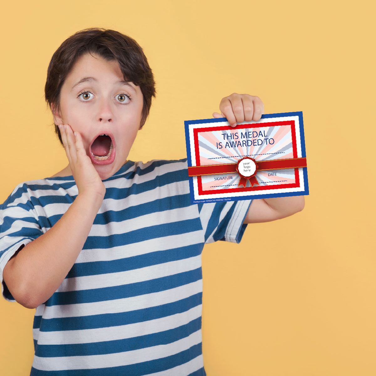 Watch their face light up when you reward them with a Medal Award certificate. Make someone in the class feel special and standing out from the crowd. The certificate features a bright and dignified design. Kids will feel proud to take home and display these Excellence awards printed on high grade 250gsm silk finish photo paper. Upload your own logo/image, the spacious lines are perfect for hand written personalisation and can be customised to any task achieved.